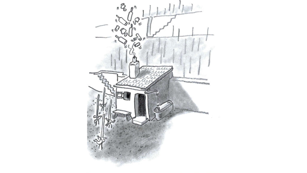il y a aussi des verres vaudois [1] et des bouteilles pleines et d’autres vidées qu’on garde en souvenir des bons moments passé en ce lieu