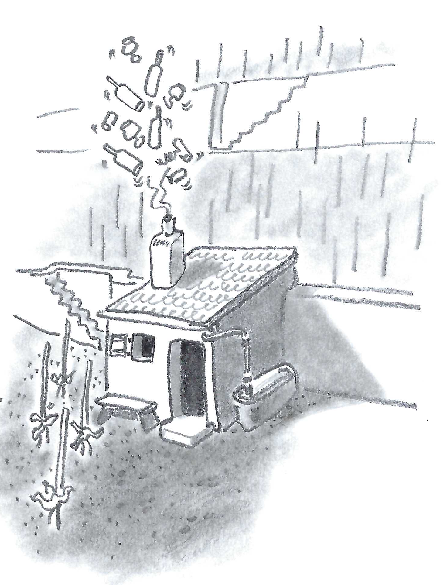 il y a aussi des verres vaudois [1] et des bouteilles pleines et d’autres vidées qu’on garde en souvenir des bons moments passé en ce lieu